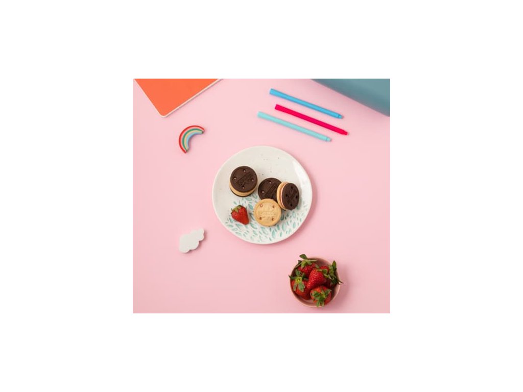 Zloženie: ryžová múka, cukor, rastlinné oleje (bambucký, kokosový), kukuričný škrob, dextróza, kukuričná múka, zemiakový škrob, slnečnicový olej, modifikovaný zemiakový škrob, glukózový sirup, invertný cukrový sirup, kakaový prášok so zníženým obsahom tuku, jahodový prášok 0,7 %, zahusťovadlo: xantánová guma; kypriaci prostriedok: uhličitany sodné; okysľovadlo: kyselina mliečna; arómy, emulgátor: slnečnicový lecitín; soľ. Môže obsahovať sóju.
