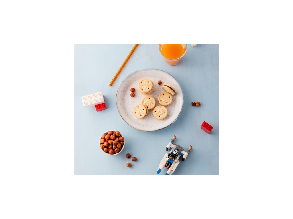 Zloženie: ryžová múka, cukor, rastlinné tuky (bambucký, kokosový), kukuričný škrob, kukuričná múka, nízkotučný kakaový prášok 4,5 %, dextróza, glukózový sirup, zemiakový škrob, slnečnicový olej, modifikovaný zemiakový škrob, invertný cukrový sirup, zahusťovadlo: xantánová guma; kypriaci prostriedok: hydrogénuhličitan sodný; soľ, emulgátor: slnečnicový lecitín; prírodná aróma (lieskový orech) 0,07 %, prírodná aróma. Môže obsahovať stopy sóje.