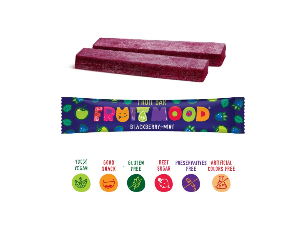 Ovocná tyčinka Fruit Mood Černica s mätou je vyrobená v tej najvyššej kvalite s vysokým podielom ovocia - černica tvorí 44,1%, jablko 44,5%, mäta 1,6%, znížený obsah cukru 9,3% a obalená je v ryžovom prachu 0,5%. Ideálna na desiatu do školy alebo na výlet.